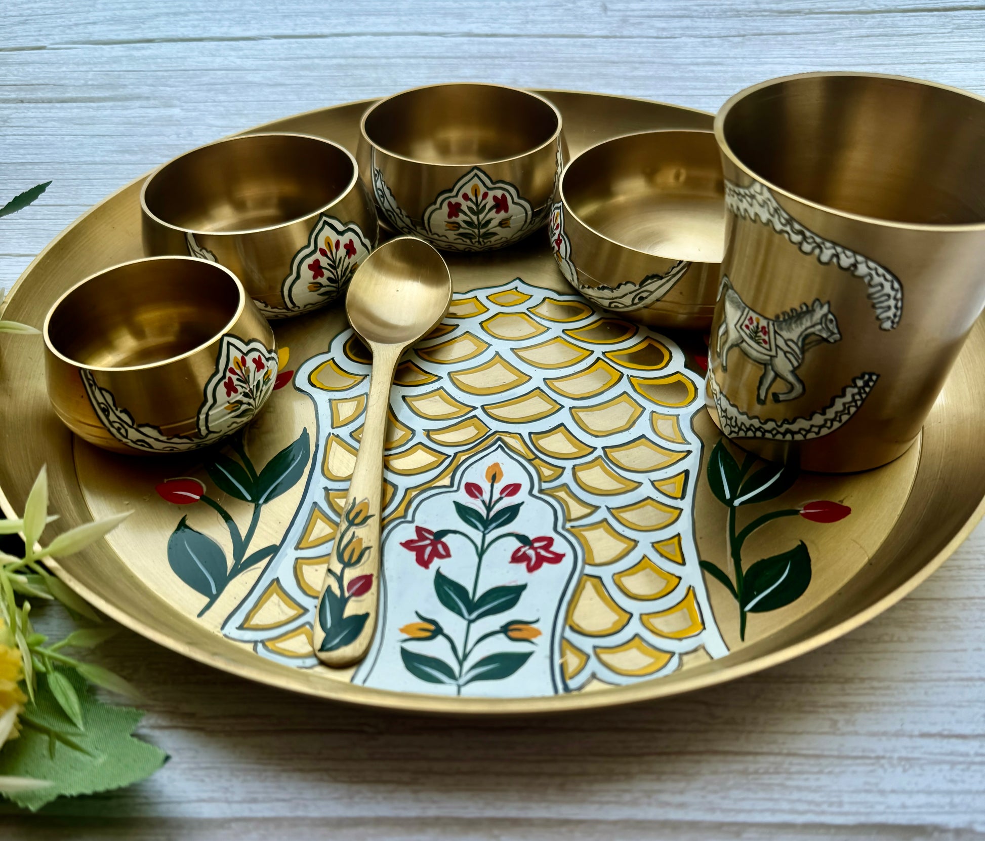 Transform your dining table with the enchanting beauty of our Hand-Painted Thali Set from Bhagya, where tradition meets elegance!